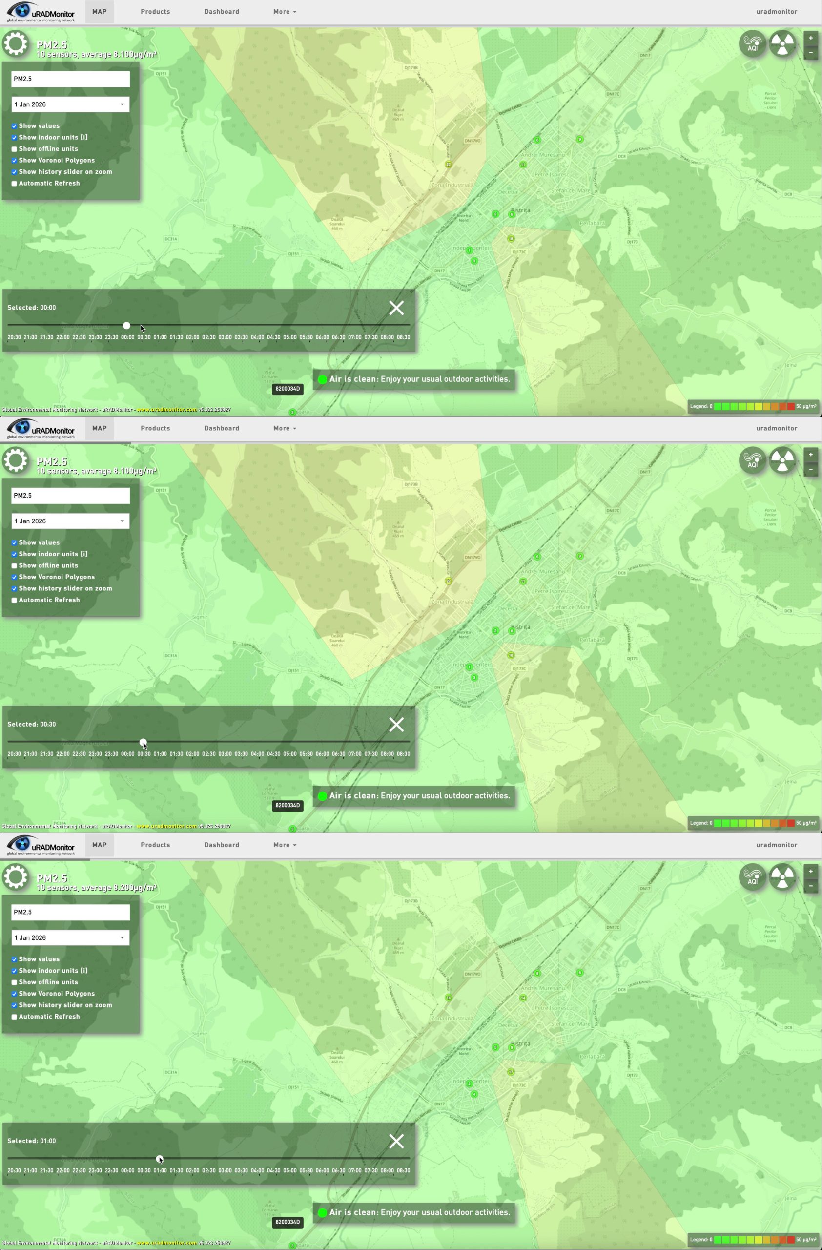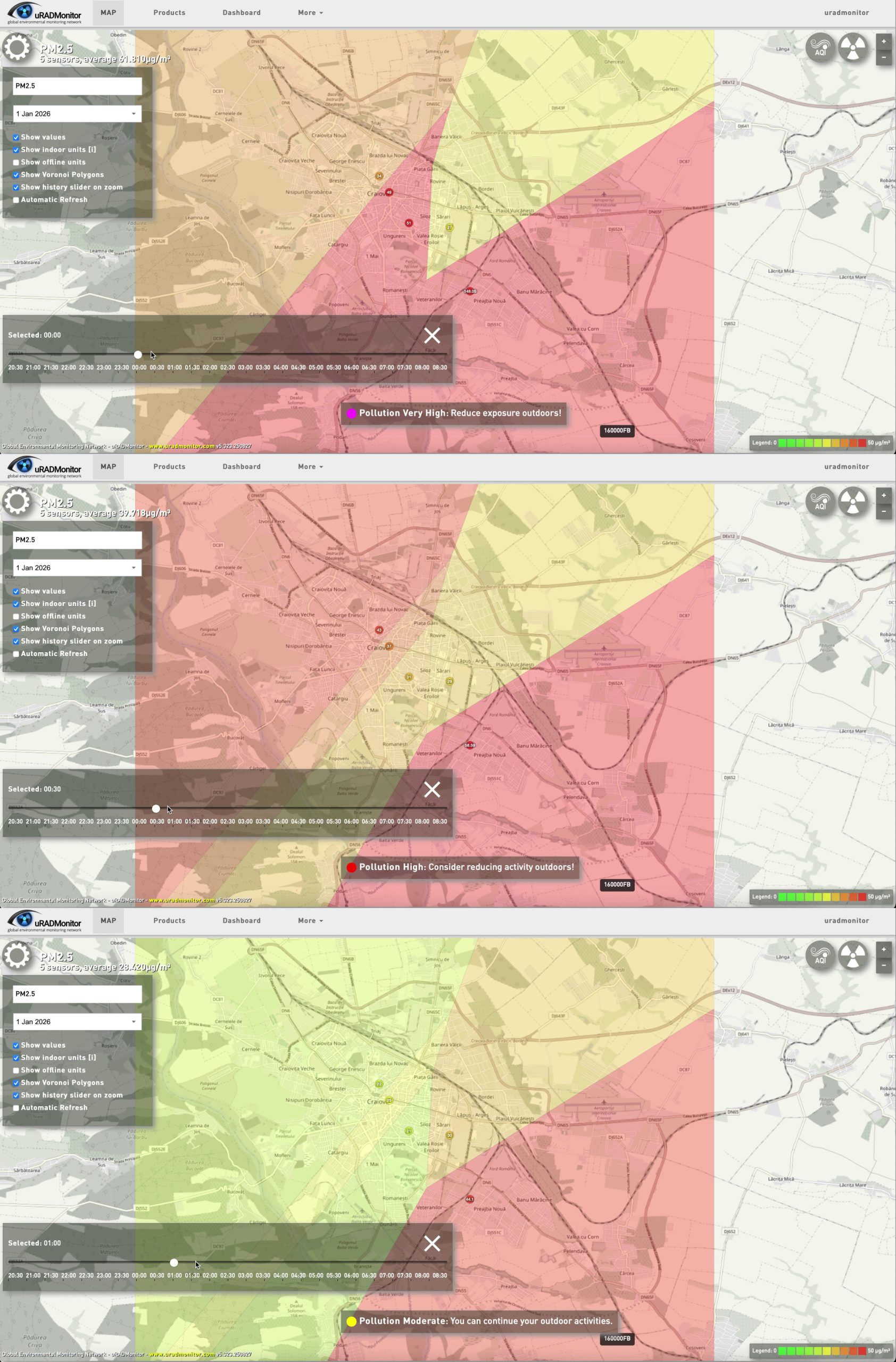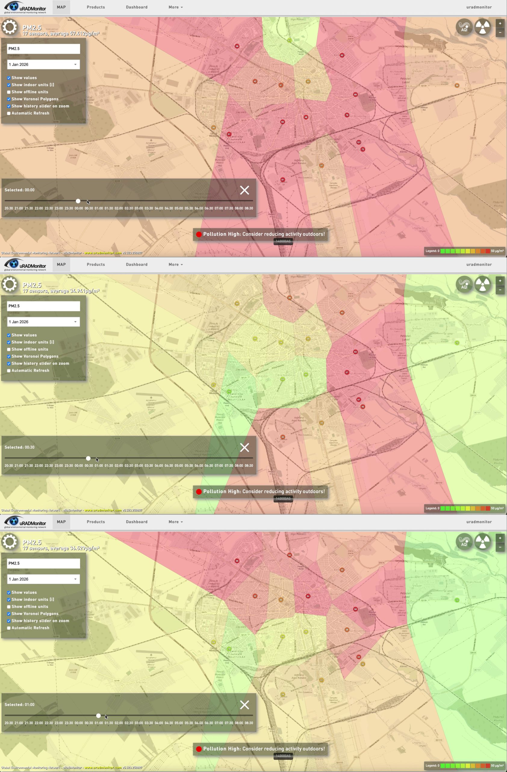 For New Year’s Eve 2025–2026 in Romania, we examined data from the dense network of sensors across major cities. Some (including Brașov, Cluj-Napoca, and others) replaced official fireworks with laser, light, or drone shows to reduce pollution and protect wildlife, while cities that retained fireworks (or allowed widespread private use) showed typical particulate surges.