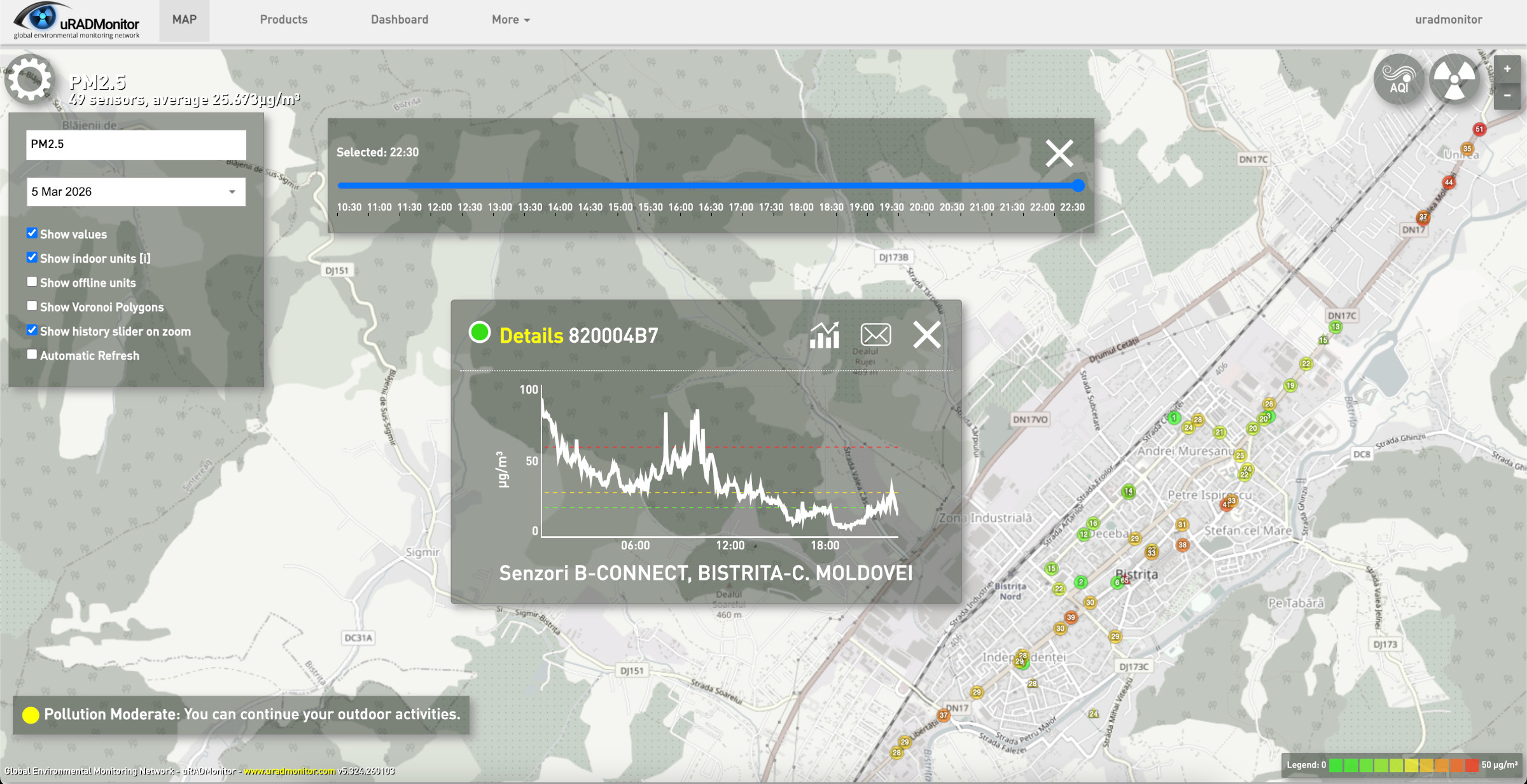 In conclusion, this expanded uRADMonitor deployment under B-CONNECT promises significant utility: enhanced real-time data for air quality and weather will inform urban planning, reduce pollution-related health risks, and support research by partners like Babeș-Bolyai University or UTCN. By fostering a biophilic city, it will boost community resilience, sustainable mobility, and overall well-being, positioning Bistrița as a model for eco-friendly European urbanism. With data-driven insights, residents can expect cleaner air, smarter decisions, and a greener future improving their awareness and contribution to the community.