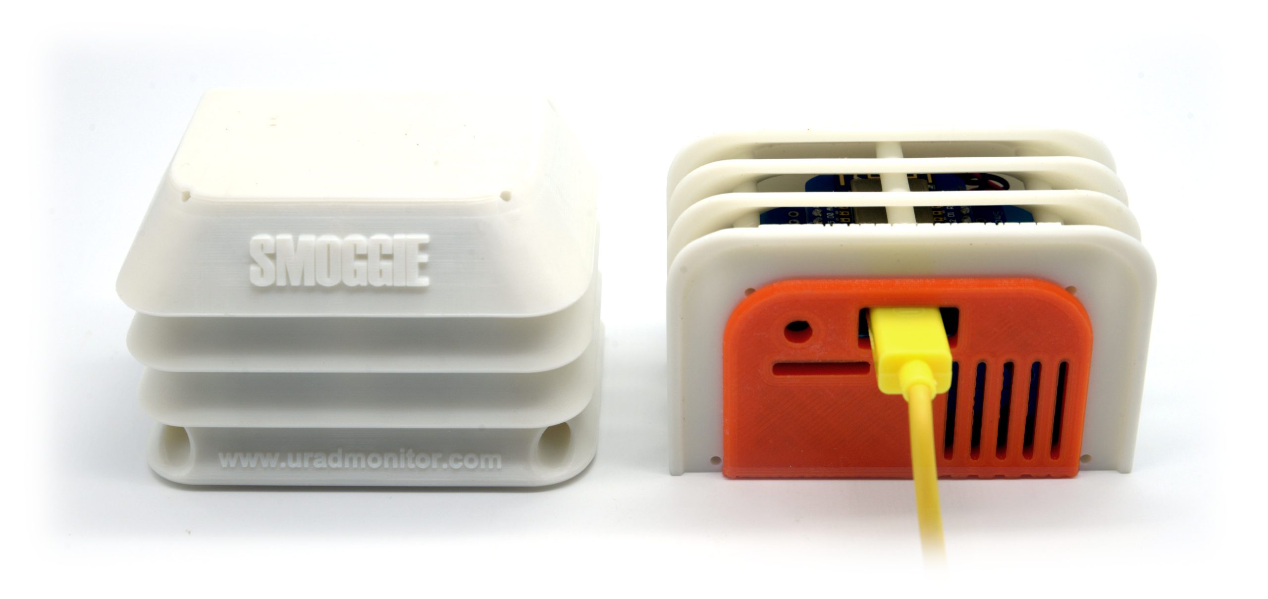 SMOGGIE-GAS is an automated, fixed, toxic gases monitoring station. It has Wifi connectivity to send the air quality measurements to the uRADMonitor Cloud in real time. It needs 5V to run, powered by a standard micro-USB cable. This unit doesn't have a screen, it works as a monitor and the data can be viewed remotely on a computer or on a mobile device.