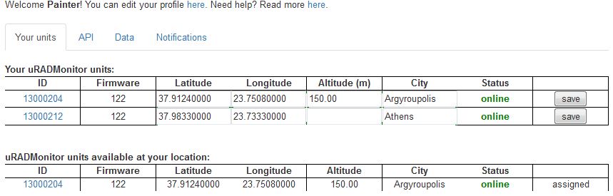 That was depending on when I was logging in my account from home or when he was doing the same.As you can see below it seems that I have two units, 13000204 and 13000211. The correct is 13000204 (Painter), the other unit ID is online in another location and should be assigned to a different account (emel).